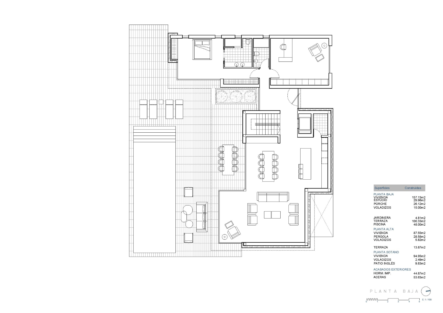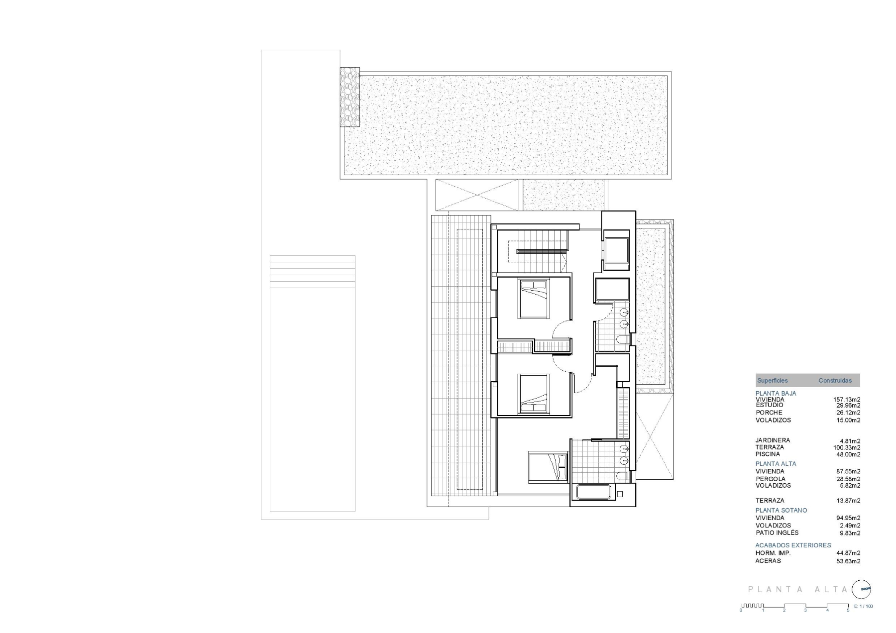 This charming project is a modern and functional two-storey home, thoughtfully designed to offer maximum comfort and take full advantage of natural light. With a total built area of 395.71 m2, the layout has been carefully planned to create a harmonious and practical living space. The first floor is dedicated to communal areas, including spacious living and dining areas, a large modern open-plan kitchen, a utility room and a bedroom. The upper floor is reserved for the private sleeping quarters, featuring generously sized bedrooms with built-in wardrobes and access to a balcony with stunning views. Outside, the property boasts an inviting swimming pool with a convenient outdoor shower and a mix of covered and sun-drenched terraces. Perfect for relaxing or entertaining, the outdoor spaces include a poolside terrace and a balcony accessible from the master bedroom. The house has air conditioning and a climate control system, ensuring year-round comfort. This is an ideal home for those seeking a contemporary and comfortable lifestyle in a tranquil setting. Whether for daily living or enjoying the Mediterranean climate, this property offers the perfect balance of style and functionality.