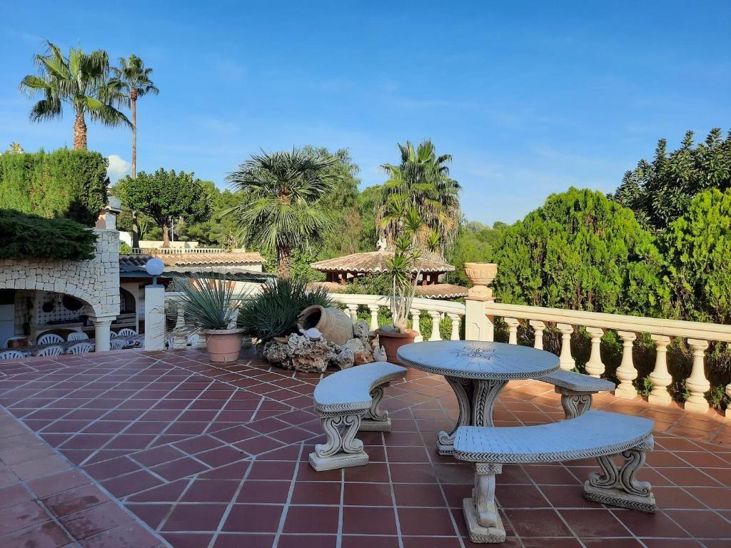 PRICE NEGOTIABLE Spacious Villa with Sea Views, Pool and flats in Benissa, Costa Blanca. Access from the street through a gate. On this floor is the main house with living room with fireplace, dining room, open plan kitchen, with 2 double bedrooms, 1 family bathroom and a guest toilet. At this level there are already clear sea views. From the master bedroom there is a very spacious terrace overlooking the garden. Also on this floor there is another terrace with barbecue, sink, etc with sea views. From this floor there are stairs to a small room used as an office and access to the roof, where there is a large terrace and a small storage room. The house also has two other accesses on this level, one to a covered parking area for one car and the laundry room, and another entrance to an open parking area for several cars. External stairs (also interior) lead to the ground floor, where there are 3 flats with their private kitchenettes and bathrooms, enough to accommodate 13 people. On this level is the large swimming pool and terraces, and in the semi-basement there is a Moorish style sauna for 6 people with shower and toilet and relaxation area. And going down a wide exterior staircase we find a large open dining area with open summer kitchen. Further down, a large garden on a rustic plot of more than 1.000m2 with a large pond with waterfall and fountain, a round pergola in the viceregal style, a medieval style tower, etc. The whole plot and the house have mature native trees or fruit trees. Central heating with heat pump radiators and connected to 4 solar panels, air conditioning in all main rooms (both main house and flats), double glazed wooden windows.