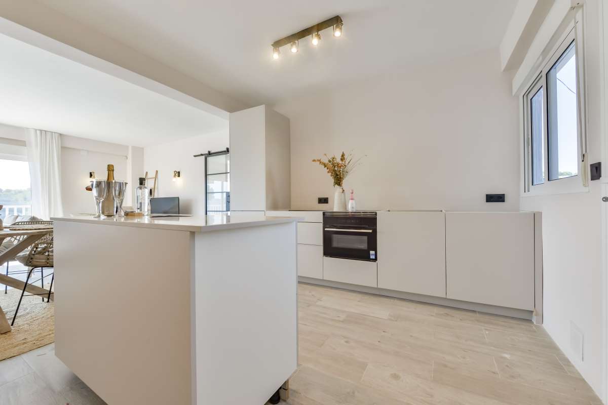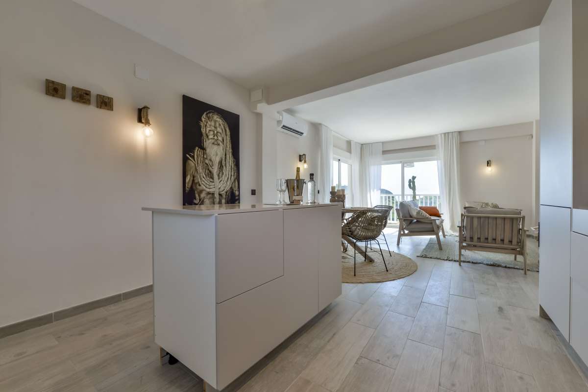 Located in the charming and peaceful area of Moraira, just steps from one of the most picturesque and tranquil coves, Cala Andrago, is this magnificent apartment for sale. Located on the second floor of an exclusive building with only four floors, access is extremely convenient thanks to the practical elevator that facilitates access to the property. This luxury apartment, completely renovated and elegantly furnished with exquisite taste, stands out for its stunning sea views, which can be enjoyed from its spacious L-shaped terrace. The terrace offers a perfect space to relax and contemplate the horizon, creating an atmosphere of serenity and natural beauty. The interior of the apartment has been designed to maximize light and comfort. It features a spacious living-dining room that opens directly onto the terrace, allowing you to enjoy panoramic views in a cozy and sophisticated setting. The modern kitchen, with views of the sea and Moraira’s port, is fully equipped with state-of-the-art appliances and everything you need for everyday life, combining functionality and style. The property has three bedrooms, ideal for families or for those who want additional space for guests or an office. The full bathroom complements the layout, offering comfort and practicality in a contemporary design. For added convenience, the apartment includes an uncovered parking space, adding value and ease of access. Additional features include double glazing for superior acoustic and thermal insulation, shutters that allow optimal light control and privacy, and an elevator for easy access. This property represents an exceptional opportunity for those seeking a residence with sea views in a prime location, perfect for both year-round living and rental investment with guaranteed profitability. The apartment in Andragó, Moraira, is the ideal choice for enjoying the Mediterranean lifestyle in a peaceful, beautiful, and charming setting.