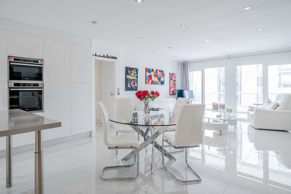 In an apartment complex located right on Arenal Beach, next to all the necessary services, restaurants, and other amenities, is this super-modern apartment that is exceptionally situated to serve panoramic views of the Mediterranean while also being remote so you can enjoy the lovely tropical breezes. The apartment is done in a minimalist design that is endearing and magnificent with an understated elegance and charm. It is distributed in a cozy living room that opens onto a beautiful sunny terrace with sea views. The light and airy space blends with a spacious dining area that then gives way to an open gourmet kitchen that is fully equipped. With 3 bedrooms and 2 bathrooms, you and your loved ones will enjoy the convenience, comfort, and style that can only be experienced in a beautiful living space like this. This property is equipped with air conditioning, and even the overall structure of the space is inlaid with large built-in wardrobes and a dressing room, protruding shelves and level platforms, among other surprises, where you can store your belongings while adding character to the home in your own way. And who wouldn’t want a home that reflects their individuality? The complex also has ample parking near Avenida Gabriel MirĂ³ in Calpe, next to restaurants, banks, luxury hotels, and beautiful beaches. Feel free to contact us for a site visit.