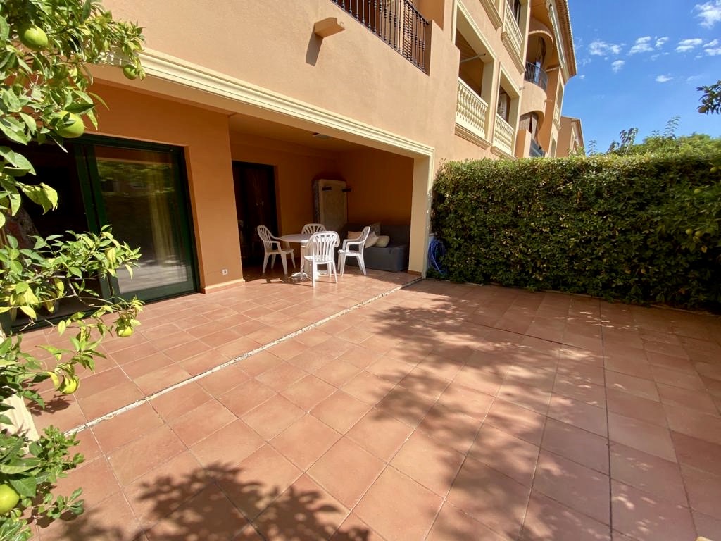 Ground floor apartment, south facing, 1 double bedroom and 1 bathroom, American style kitchen, lounge and dining room with access to the large terrace covered and open, air conditioning hot and cold, under floor heating, located in a well maintained complex with communal indoor and outdoor swimming pool, gymnasium, sauna. Within walking distance to all amenities.