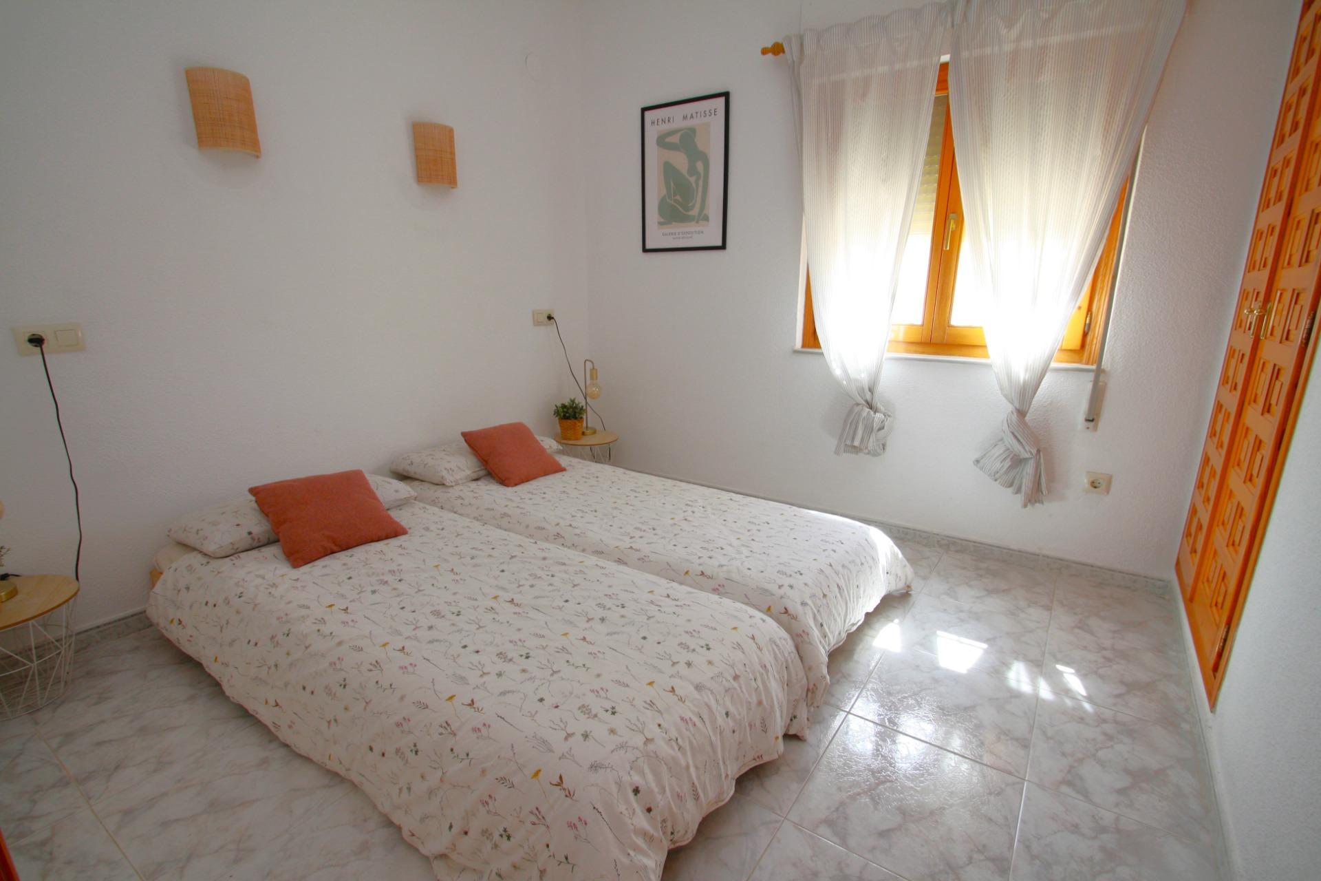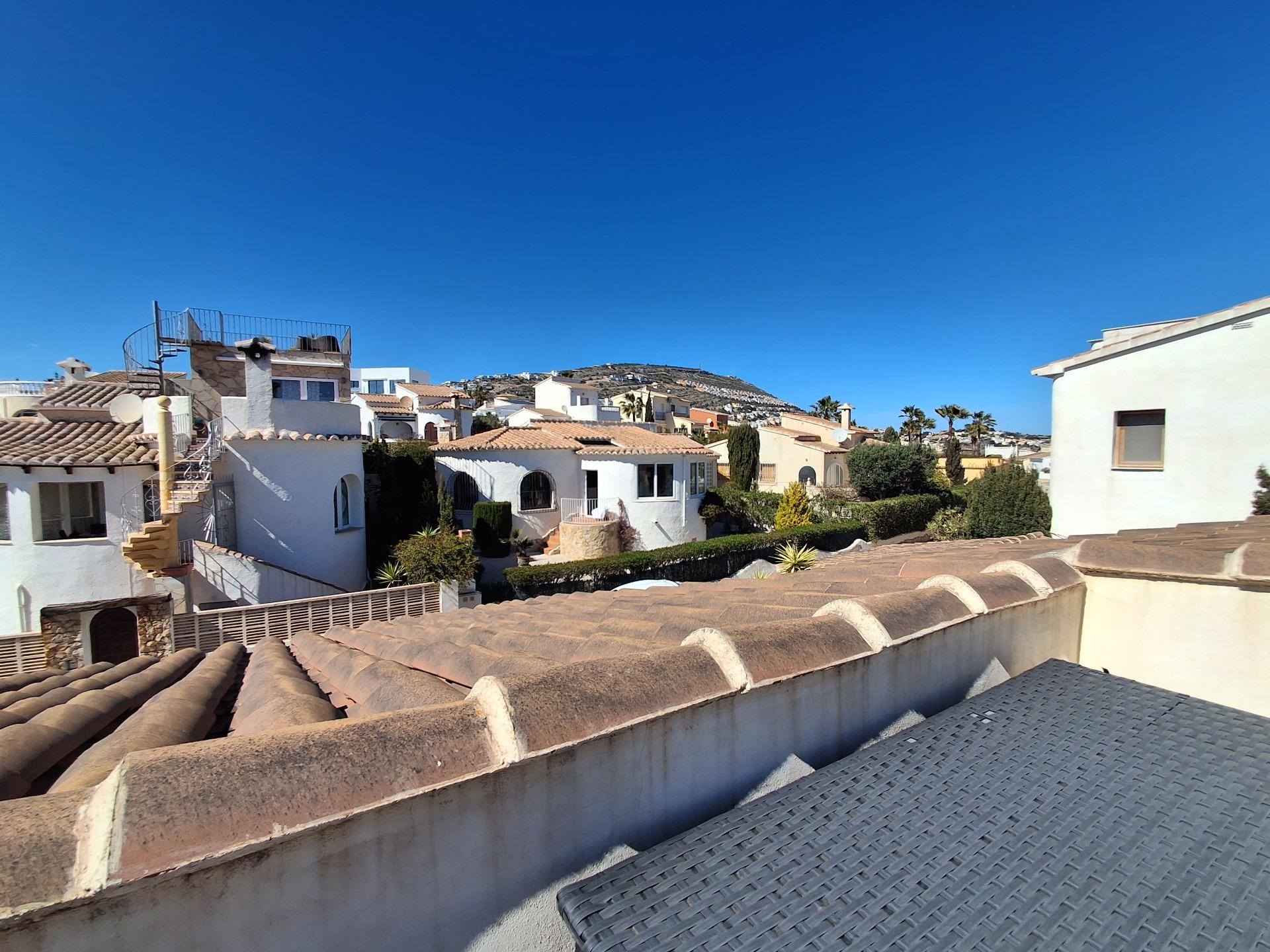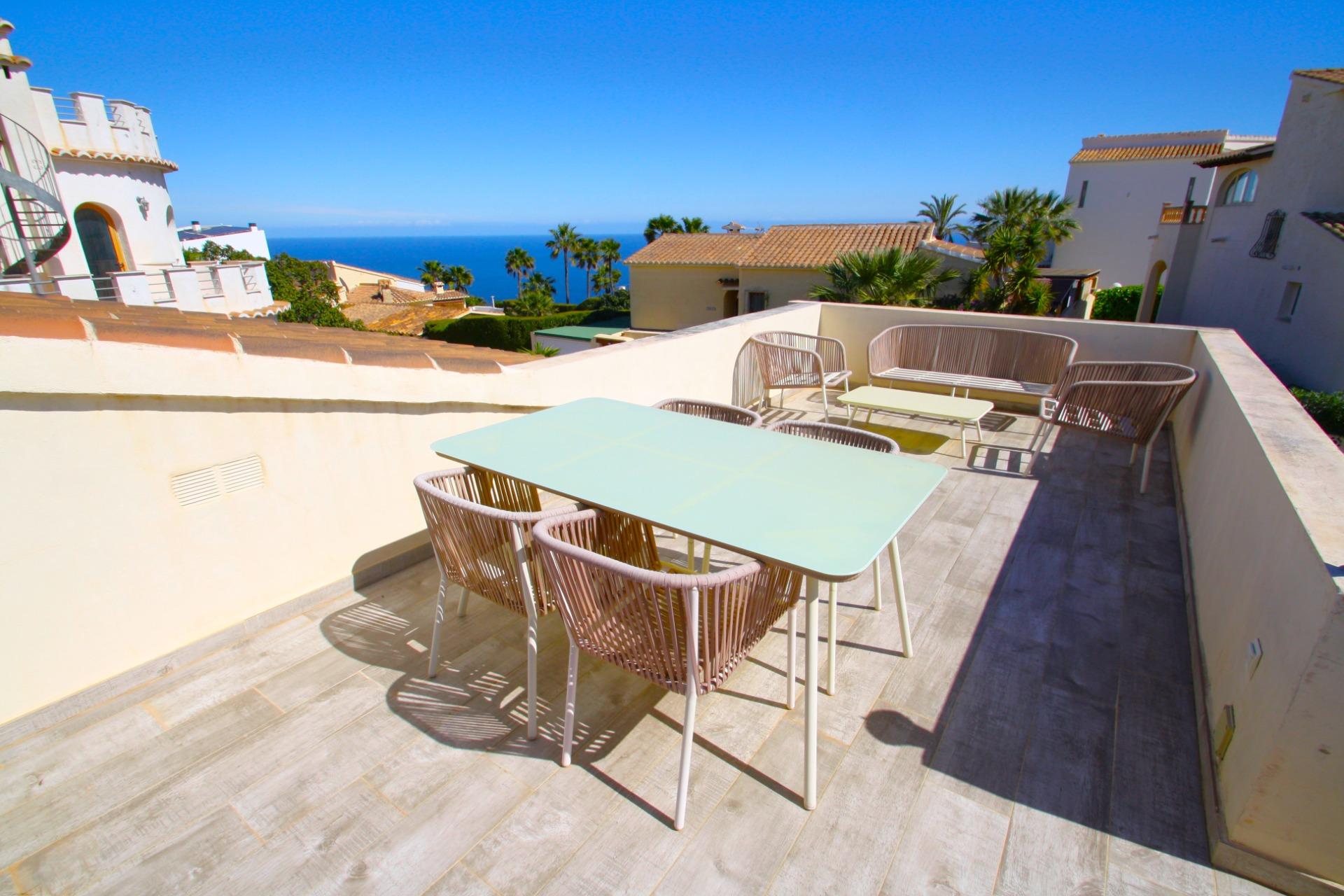Villa Cumbre del Sol – Pueblo del Mar – Benitachell – Costa Blanca. This single-story villa comprises a living-dining room, an open-plan kitchen, two double bedrooms with built-in wardrobes, a full bathroom with a laundry area, an additional living room with storage, and, via an external staircase, a solarium with open sea and mountain views. The sunny property features double-glazed windows (both wood and PVC), hot/cold air conditioning, and a cozy pellet stove perfect for warming up on chilly winter evenings. Come and visit this Mediterranean-style villa and discover the tranquility of enjoying a family meal on the solarium with its peaceful views. The property boasts a small plot surrounded by a low-maintenance, native garden with inviting spaces to enjoy at different times of day and year. The property currently has a valid tourist registration number. The Pueblo del Mar community is located near the cliff and also has a communal swimming pool, situated on the same street as the villa. Cumbre del Sol is characterized by its tranquility, with a predominantly European population seeking relaxation. It’s ideal for inspiring walks along its cliffs overlooking the sea. Cala Moraig beach is just 2 km from the villa, as is a new shopping center and post office. The house is located only 7 km from the town of Moraira and 13 km from Jávea, where you’ll find a wealth of activities, Michelin-starred restaurants, a variety of international cuisines and beaches with crystal-clear waters. In Benitachell, the main town of Cumbre del Sol, you’ll find all the amenities you need: supermarkets and shops, a pharmacy, cafes and restaurants, a medical center, a library, a town hall, a police station, parks, gardens, a market and plenty of rural areas perfect for leisurely strolls. For all these reasons, Cumbre del Sol is a favorite holiday destination, peaceful yet close to services and entertainment.