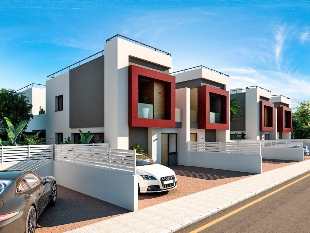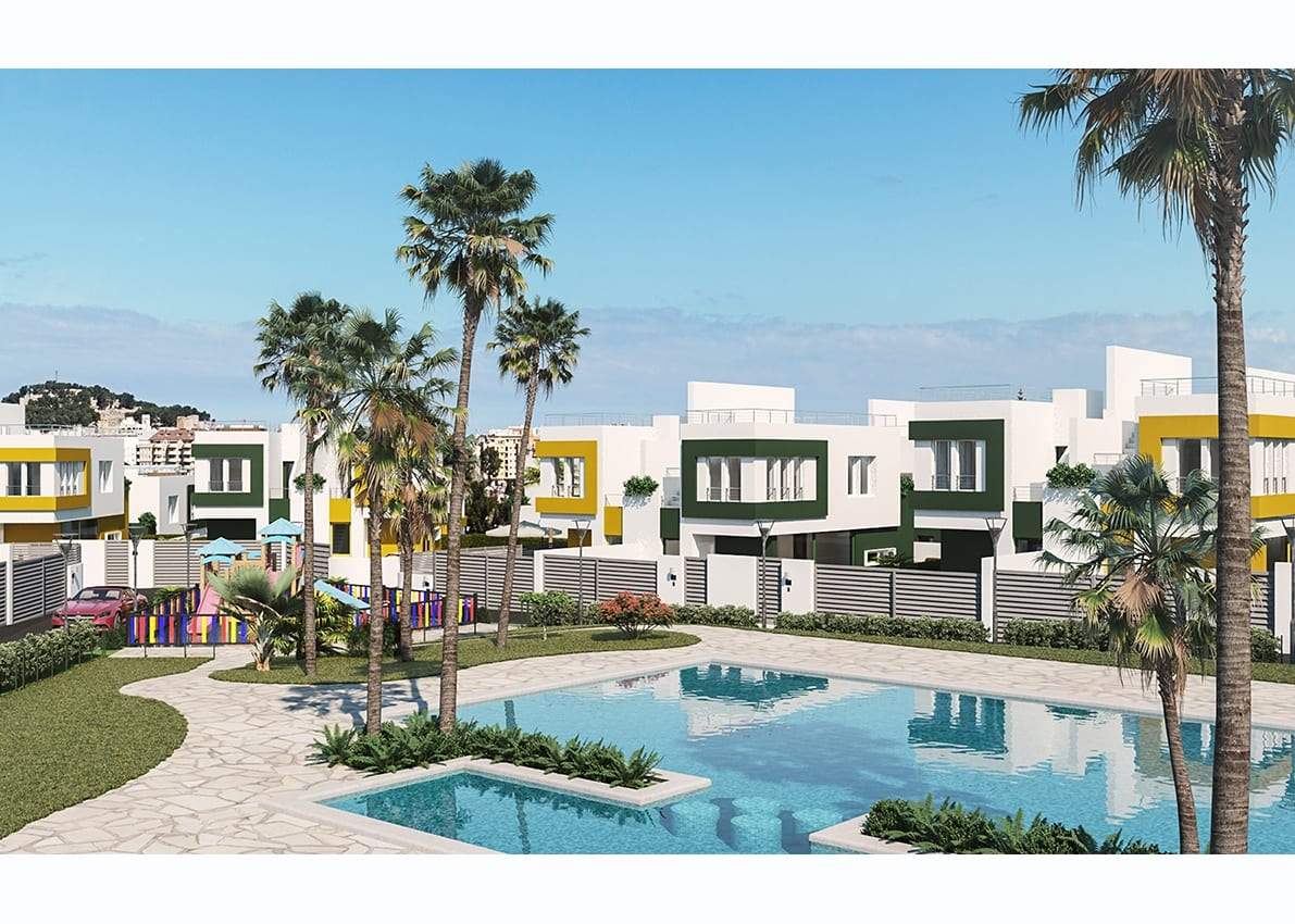 Semi-detached town houses in a GATED community, with private garden. Situated just a few minutes’ drive from Denia town and beaches. Accommodation, on the ground floor, consists of: open-plan living/dining room/kitchen, with access to private garden; toilet; guest bedroom. On the upper level: 2 bedrooms, both with shower rooms en-suite; 3rd bedroom, with access to a terrace. From the upper level, is also access to the roof terrace. In addition: pre-installation for air conditioning. Externally: walled plot; parking 2-3 vehicles; communal pool and gardens. One property is finished. Prices are from 256,000 € to 326,000, depending on the plot choice. HP96211A